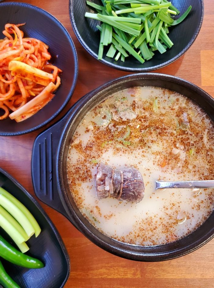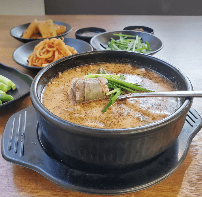 바글바글 끓어오르는 증기와 함께 올라오는 냄새가 구수했다. 사골육수의 깊은 맛에 숟가락이 연신 움직였다. 찹쌀과 시래기 두 가지 맛의 순대 또한 속이 알차 씹는 재미가 있었다. 사장님의 말처럼 섞박지와 무생채가 집에서 담근 양 지나치게 달거나 자극적이지 않고 시원했다. 집에서 담근 장처럼 거무스름한 빛깔의 쌈장은 맛이 깊었다.