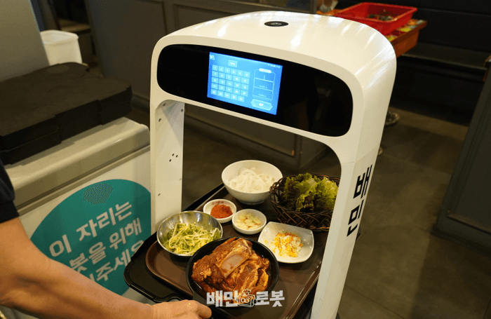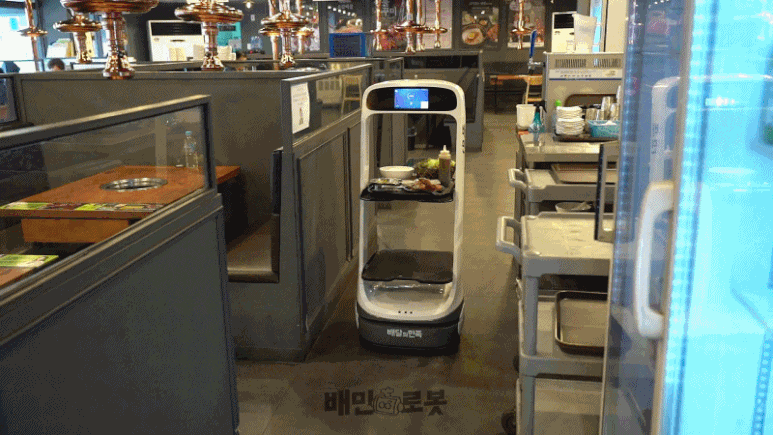 한 번에 든든하게 서빙해주는 배민로봇의 모습에