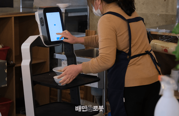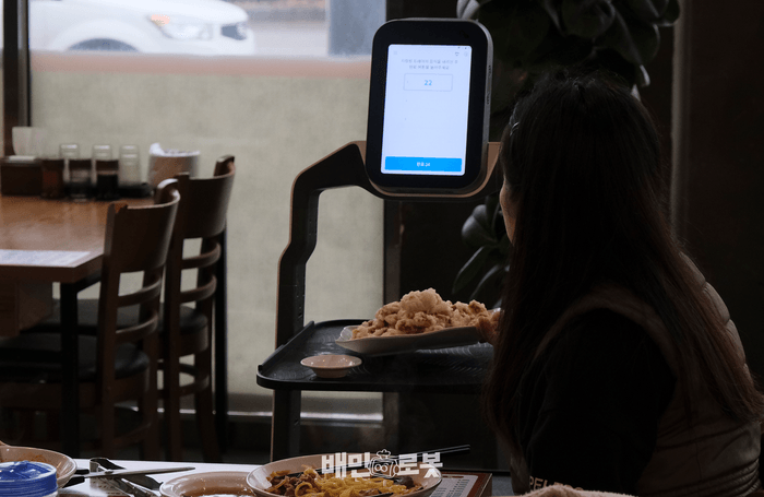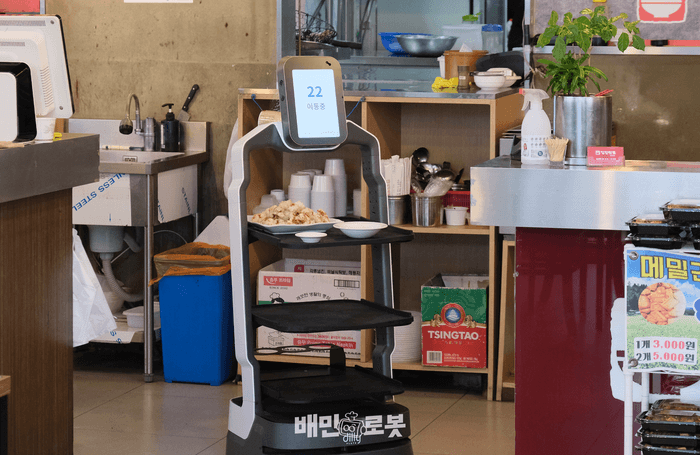 배민 서빙로봇을 사용하고 있는 맛집에 방문하여